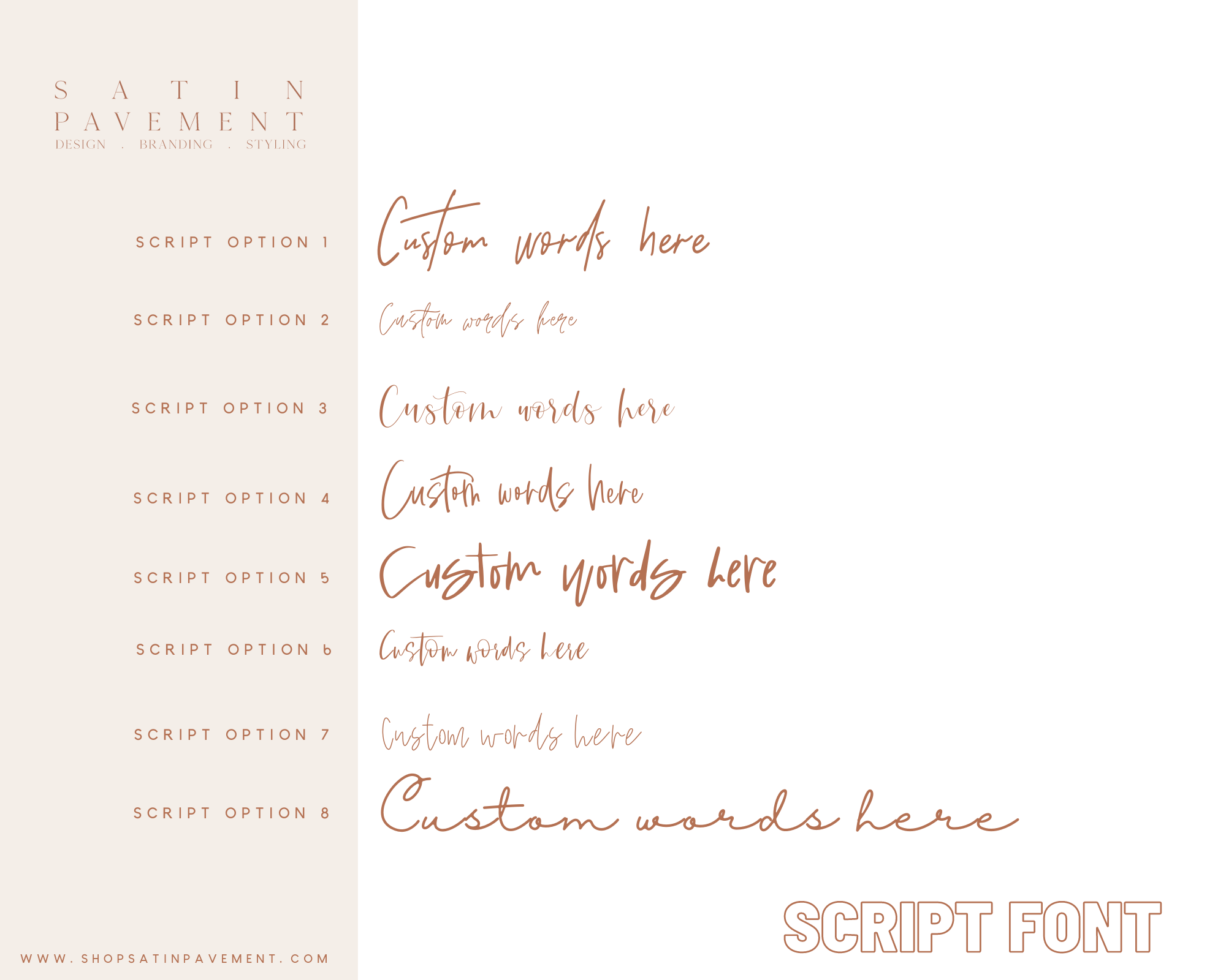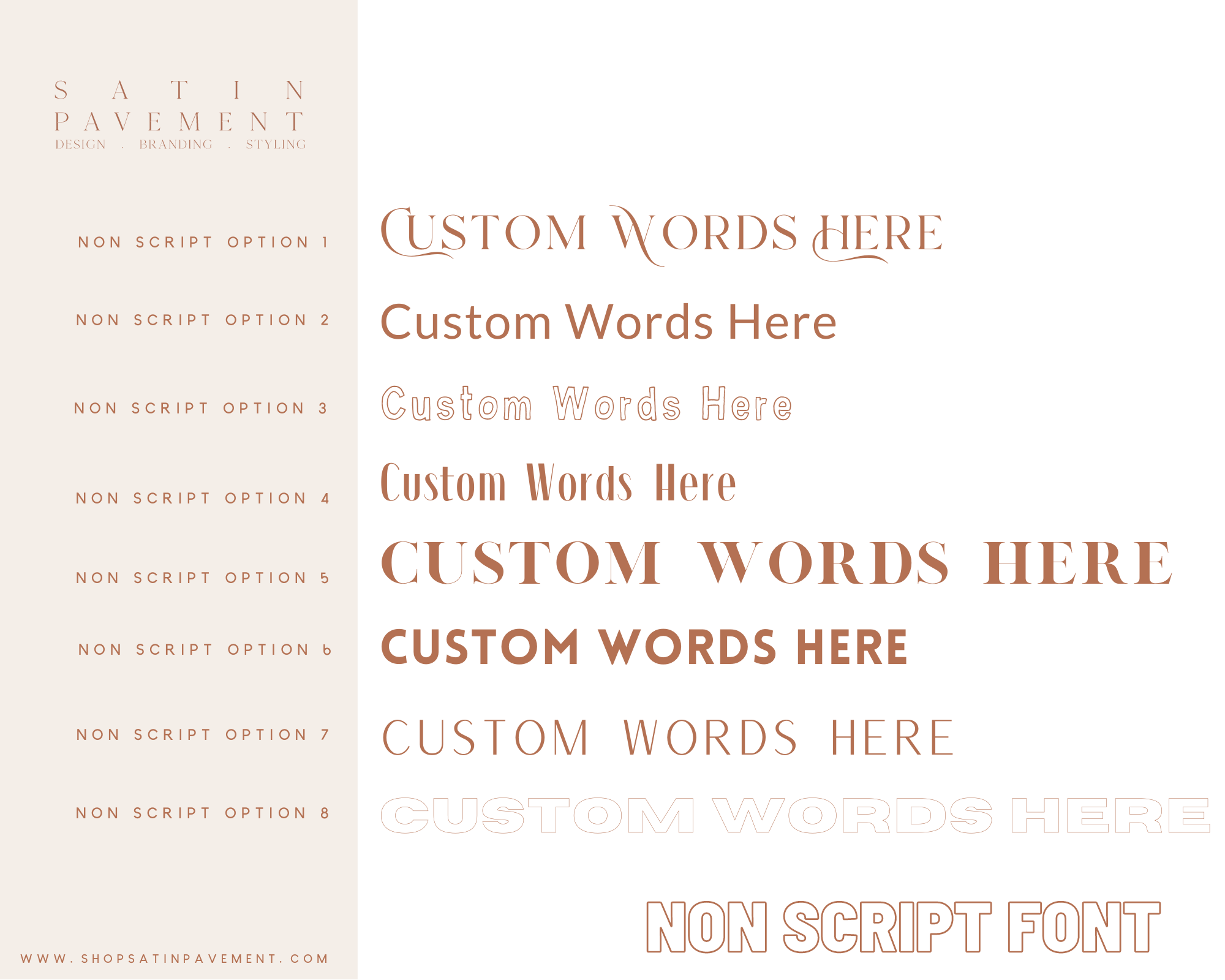 Your design will be formatted across one line, two lines, or three lines depending on the option you choose, per your concept and the designer's discretion.