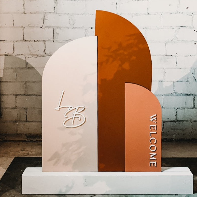 These half arch wedding welcome signage trio set is a perfect statement piece for your wedding, engagement, bridal shower of any event. This signage set is an insta worthy modern trend-setting event decor for your wedding or special event that will impress your guests and . All the little details matter and help make your event pop!