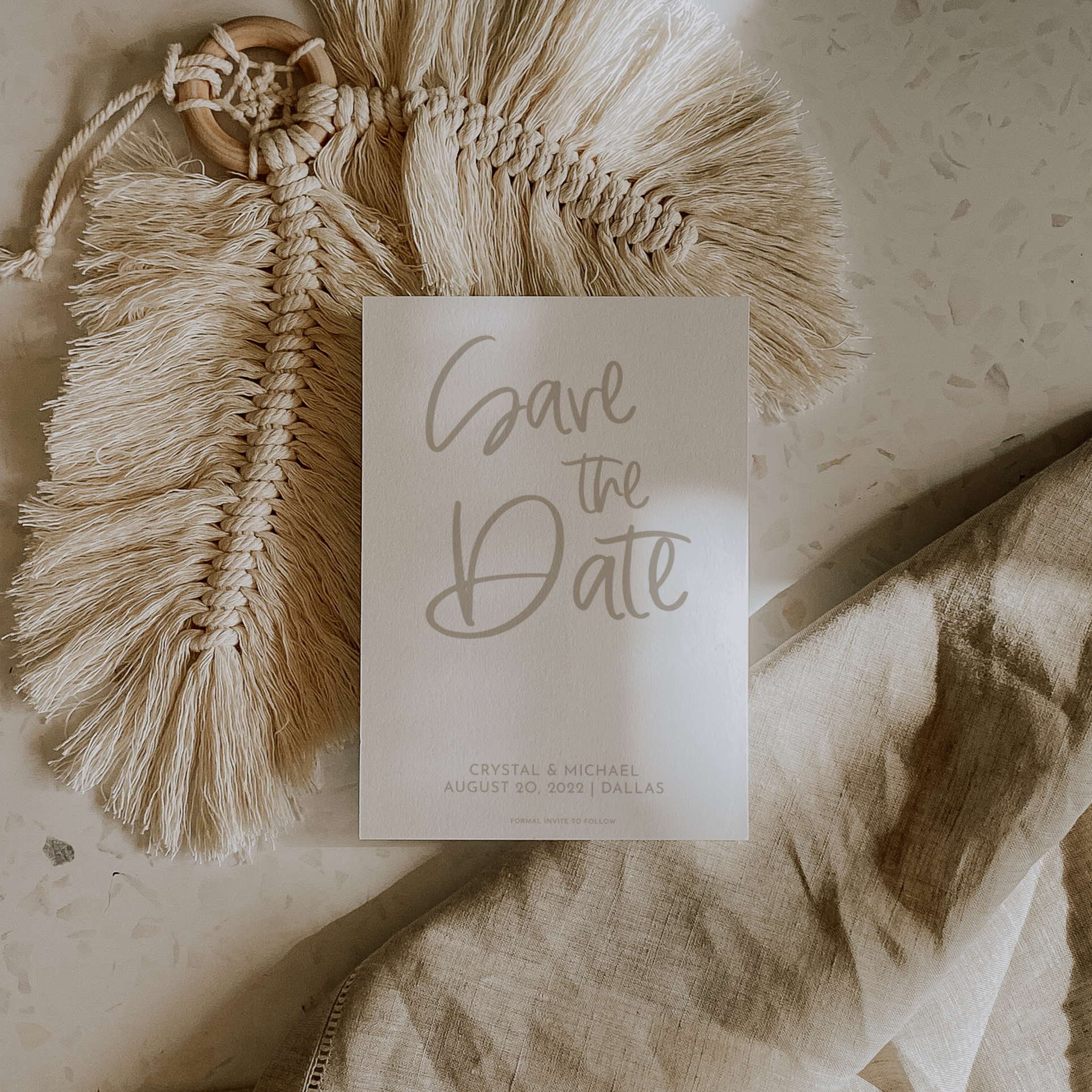 - This save the date card is 5x7 (circle is 5x5) and comes with blank matte white envelopes.